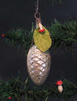 Silberzapfen mit Blatt aus Stoff und Drähten umwickelt
