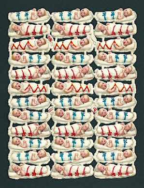 Bogen mit 36 Babies im Steckkissen, sehr stark geprägt