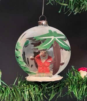 Alte Eingerichtkugel mit kleinem Weihnachtsmann