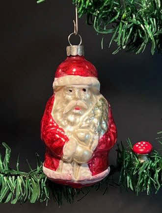 Alter Weihnachtsmann mit Tannenbäumchen und rotem Mantel