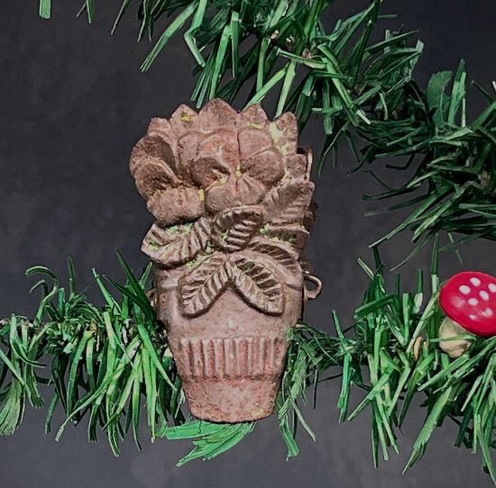 Antiker Kerzenclip in Form eines Blumentopfes mit Veilchen