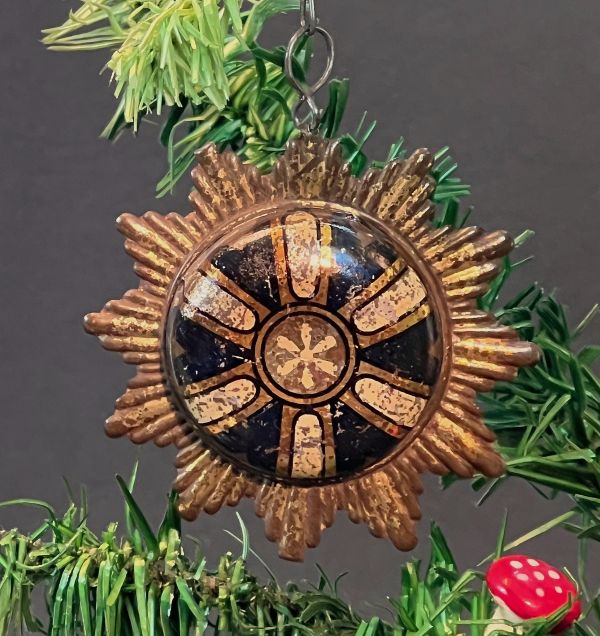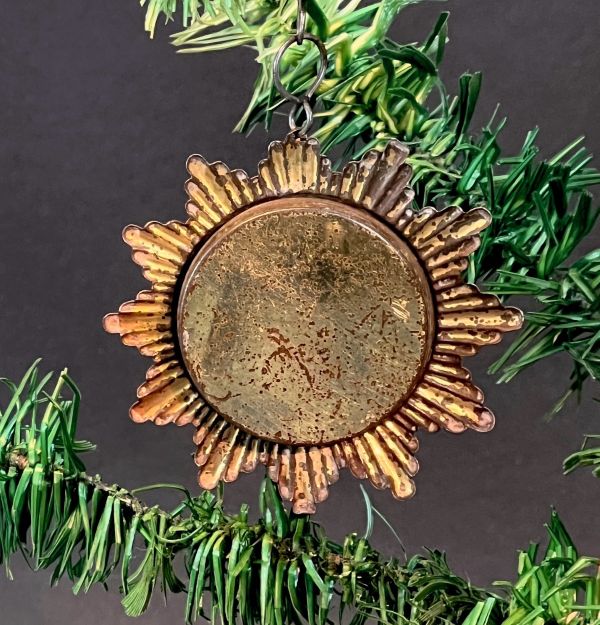 Uralter Candy Container in Form eines Ordens oder eines Sternes aus Blech