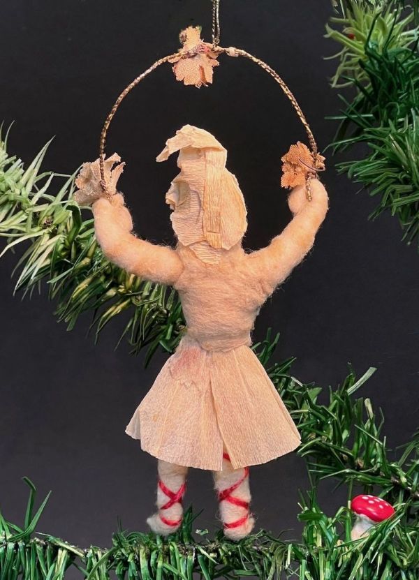 Antike Tänzerin aus Watte mit Blumenreigen in den Händen