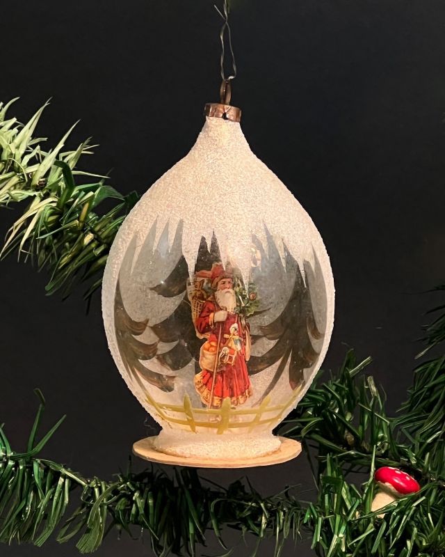 Alte Eingerichtkugel mit Weihnachtsmann ( Oblate )