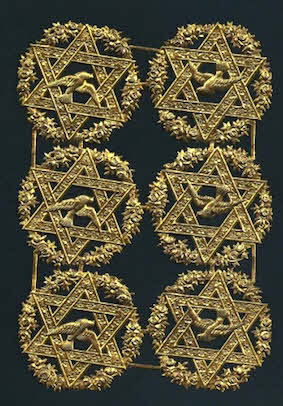Complete sheet with 6 large Dresden Salomon's seals and doves of peace in a wreath of roses