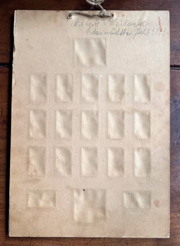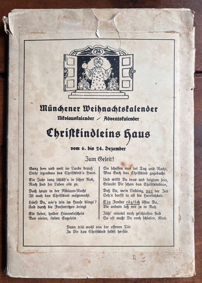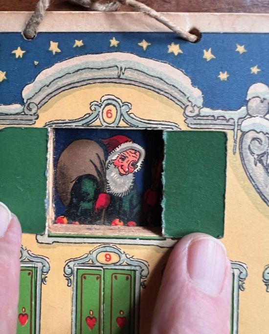 Antique Advent calendar by Dora Baum, the first Advent calendar with doors.