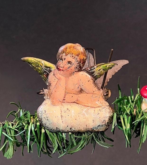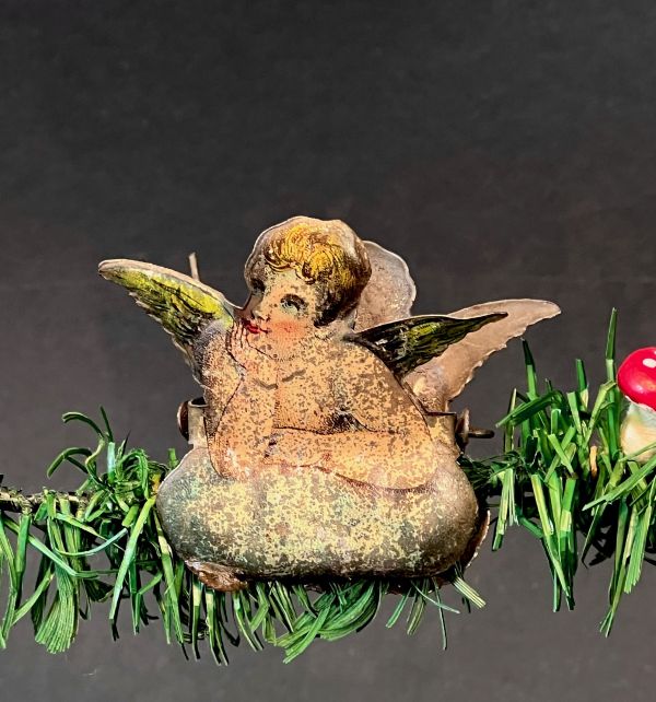 Antique candle holder with lithographed angel