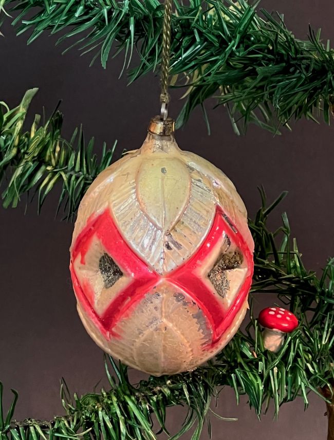 Large antique ornament with beautiful embossing, painted with gelatine.