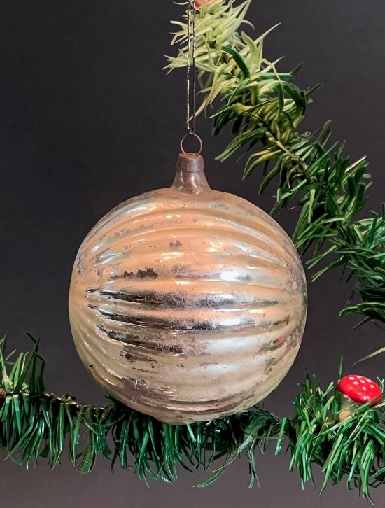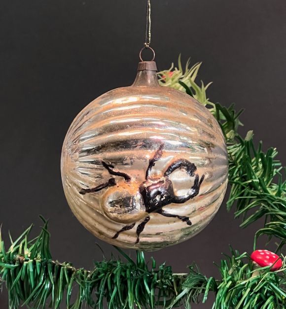 Antique, large, ribbed ball with black stag beetle