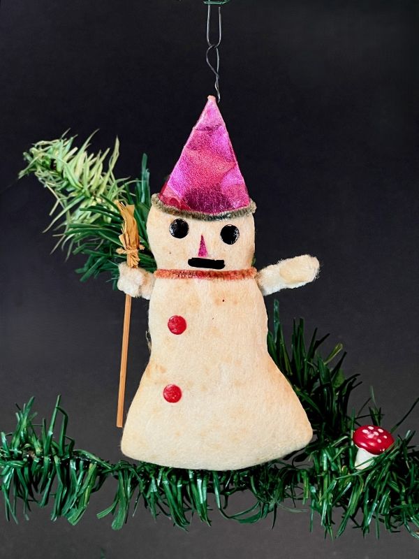 Vintage, flat snowman with a pink hat