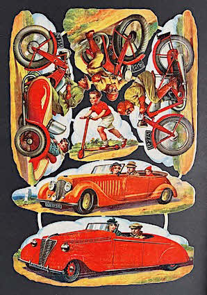 Complete sheet with vintage cars and motorcycles