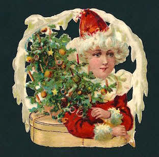 Weihnachtskind mit geschmücktem Tannenbäumchen