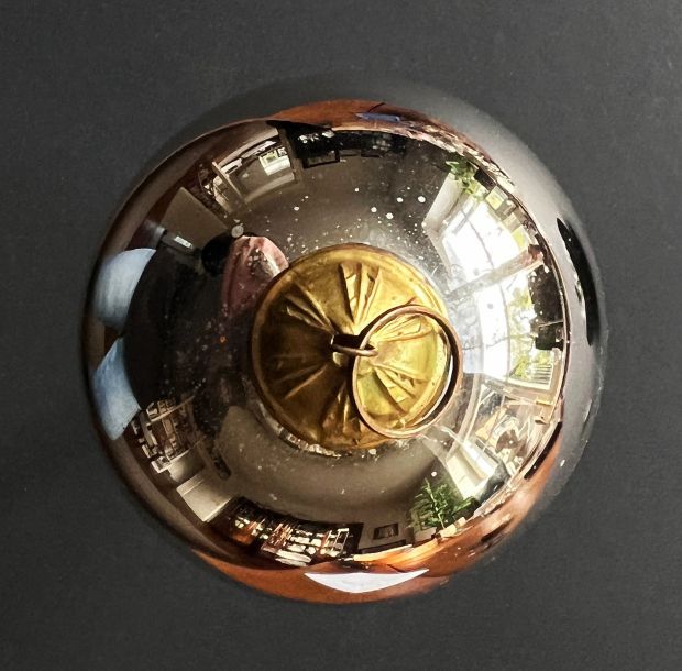 Erhaltung: gut mit leichten Altersspuren, große Luftblase im Glas ( sehr schön ! )