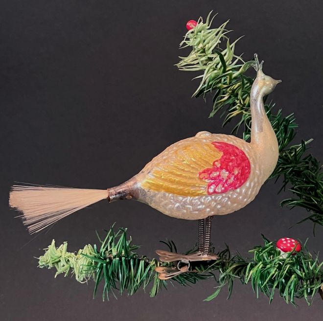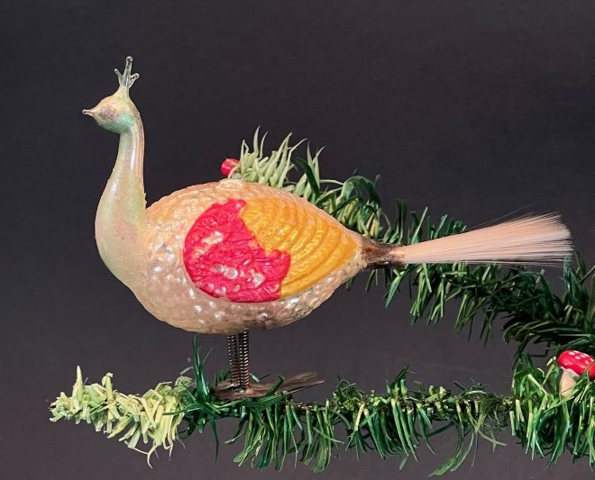 Ungewöhnlicher, antiker Glaspfau mit Gelatine bemalt