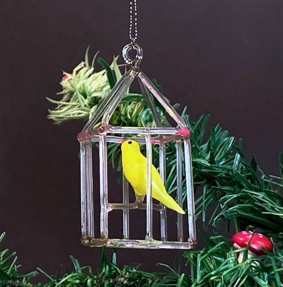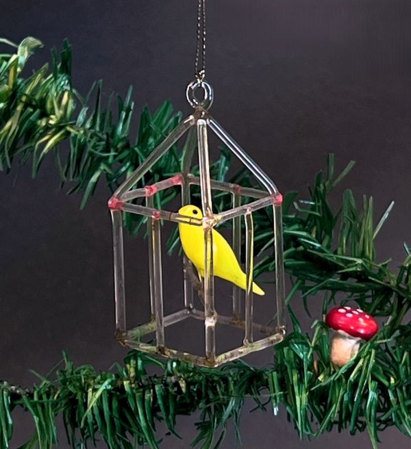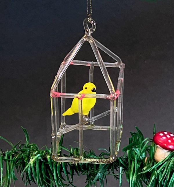 Antiker Art Glas Vogelkäfig mit Kanarienvogel