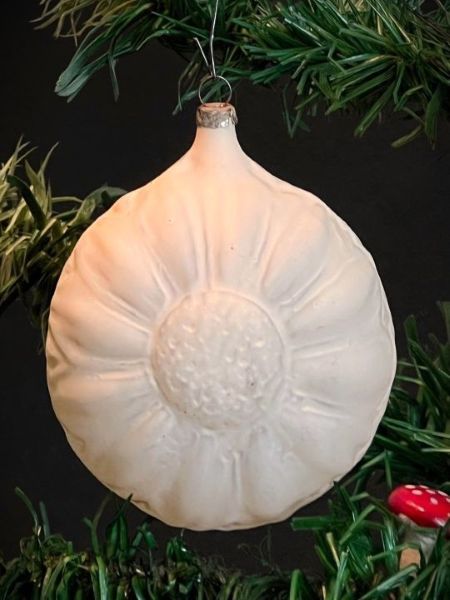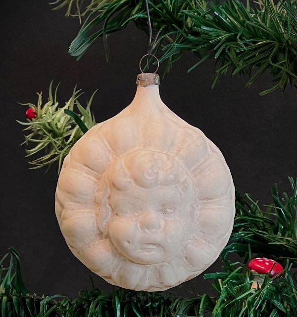 Antike, weiße Blüte mit Kinderkopf, mit Kreidefarbe bemalt