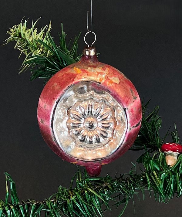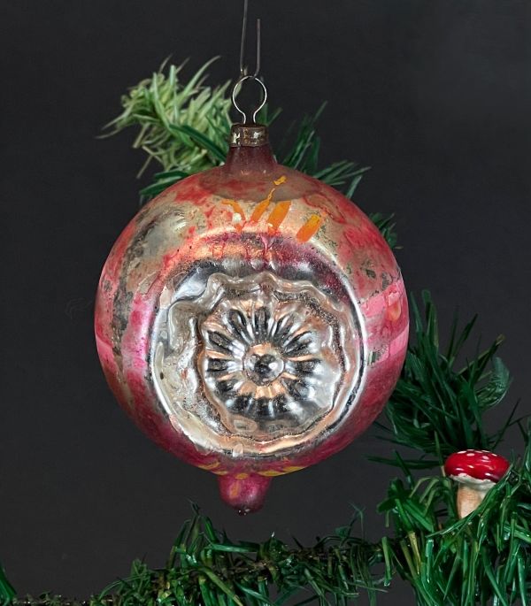 Antike rosa Kugel mit Tropfen, beidseitiger Reflex mit Margerite