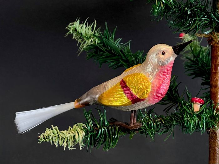 Erhaltung innere Verspiegelung im hinteren Bereich oxidiert, ganz hinten wo der Schwanz eingeklebt wurde, fehlt die Verspiegelung ganz, siehe Bilder