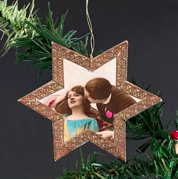 Antiker Fotostern mit Liebespaar und Dresdner Bordüre am Rand