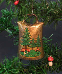Glocke mit Tannenbäumen und kleinen Fliegenpilzen