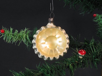 Silver mirror ornament with a ball of glass in the indent