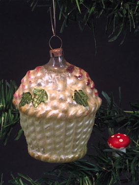 Basket filled with grapes and leaves, covered with gelatine
