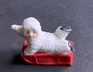 Snowbaby on a red sleigh, made of bisque porcelaine