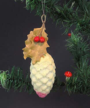 Antique glass cone with leaves and berries, covered with mica