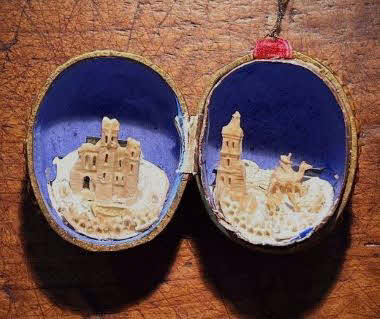 Antique nut with tragant scene from the Biedermeier period, about 1850/60