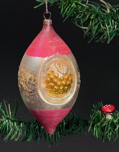 Antique, large, two-sided ornament with grapes in both indents,