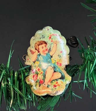 Antique candlestick with lithographed angel