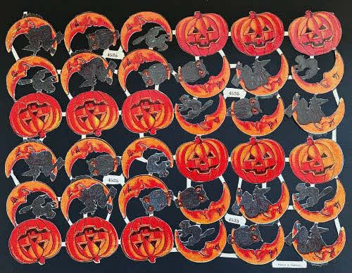 Antique, large sheet with pumpkins, moons, witches and other Halloween motifs